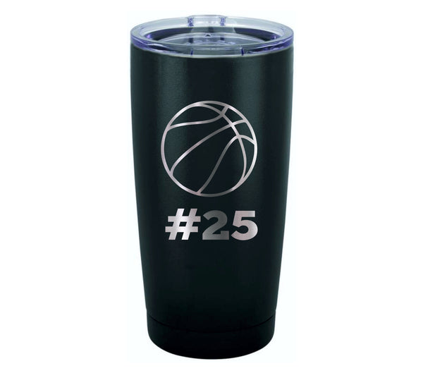 Don't be out on game day without this Laser Etched Personalized Basketball Jersey Number Tumbler. From the Tip to the last buzzer sounds HOT or COLD your Tumbler won't go out of bounds. No need to step away at half time for those long lines for your Hot Coco or Ice cold Beverage. Yours will stay the same from the start of the game through until the last seconds tick off the clock.