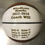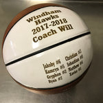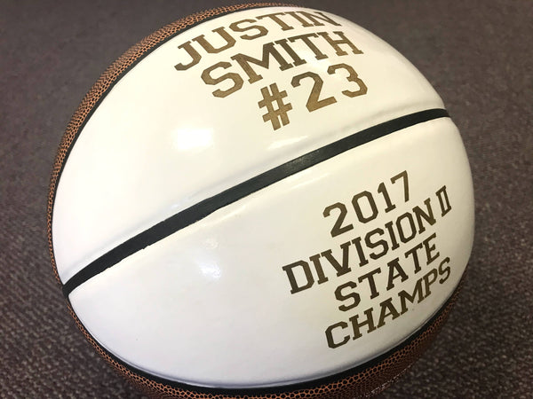 You get to choose the wording that will be engraved on the basketball, up to 3 lines of text.