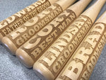 The perfect gift for that baseball slugger in your life! This full size baseball bat is made of a solid wood and is great for that future baseball star or wedding party person. This is the perfect idea for a Groomsman, Ring Bearer, Jr. Groomsman, Wedding Party or Birthday.