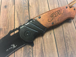 These Personalized SPRING ASSISTED Elk Ridge Folding knives feature sharp and durable black stainless steel blades and smooth handle that fits comfortably in your hand.
