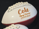 You get to choose the wording that will be engraved on the football, up to 3 lines of text.