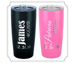 Our personalized Stainless Steel Tumblers hold 20 oz of your favorite hot or cold beverage.