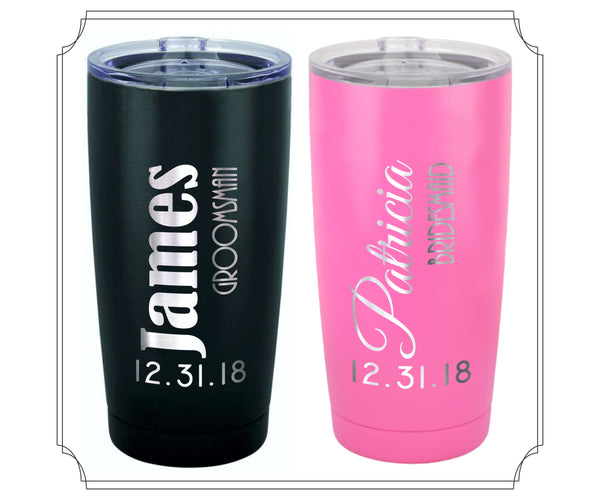 These tumblers will make a great gift / keepsake for those who have a part in your special day! Consider these for all of the guys and gals in the wedding party, personal attendants, Mom's, Dad's and Grandmother's and Grandfather's will love them too!